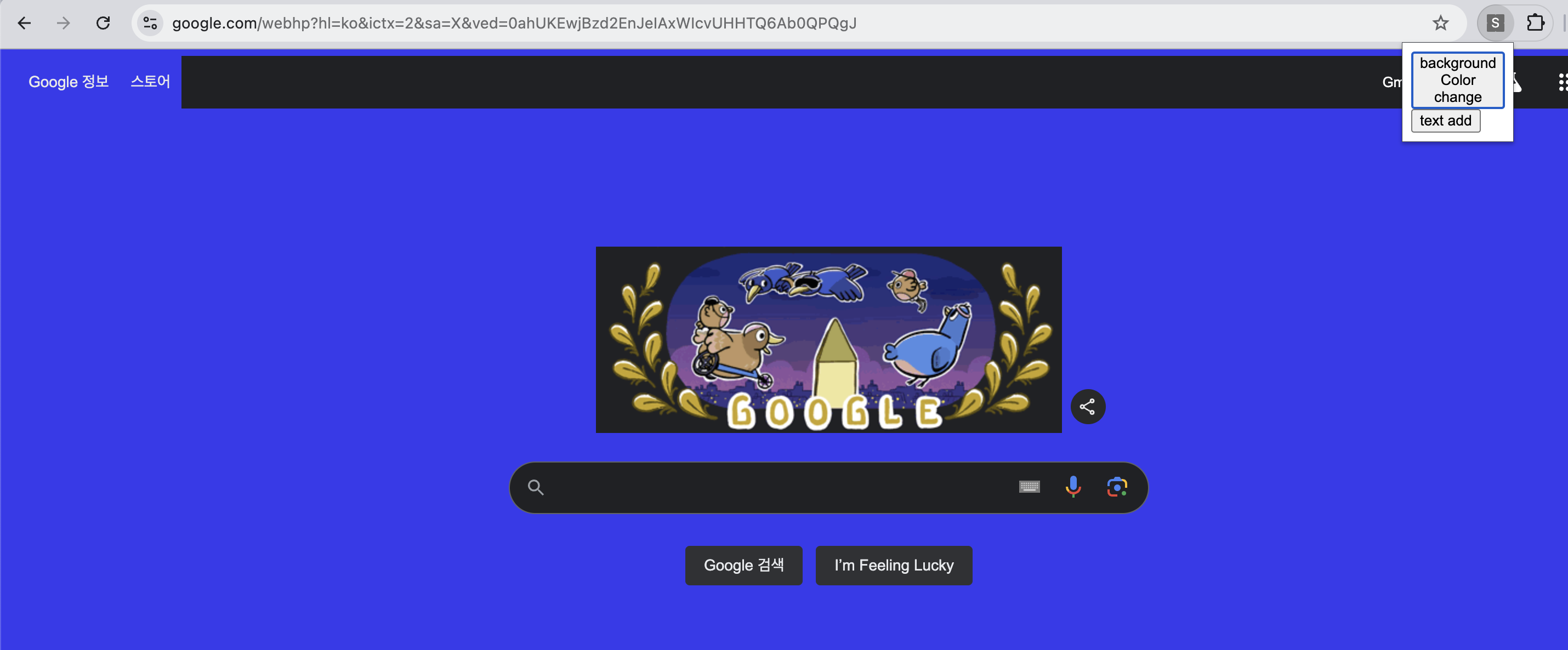 39<body>40 <button id="changeColor">background Color change</button>41 <button id="addText">text add</button>42 <script src="popup.js"></script>43</body>44