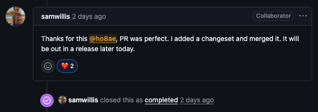 기능을 만들기 위해서 실제 필요한 타입 및 타입 헬퍼 코드를 작성하고, 타입 테스트까지 작성했습니다. 오픈소스 기여 활동을 통해서, 왜 기업 우대사항에 오픈소스 기여 경험을 보는 지 실제 경험을 통해서 알게 되었으며, 앞으로도 종종 오픈소스 기여를 할 생각이 생겼습니다 !!
